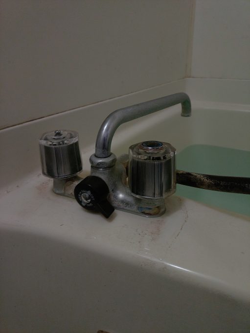 お客様宅にお伺いして状況をお聞きすると、浴室蛇口のハンドルが壊れてお湯が止まらなくなったということでした。
