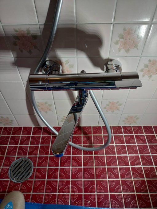 錆汚れなどを綺麗に拭き上げ、新しい蛇口、シャワーハンガーを取り付けました。