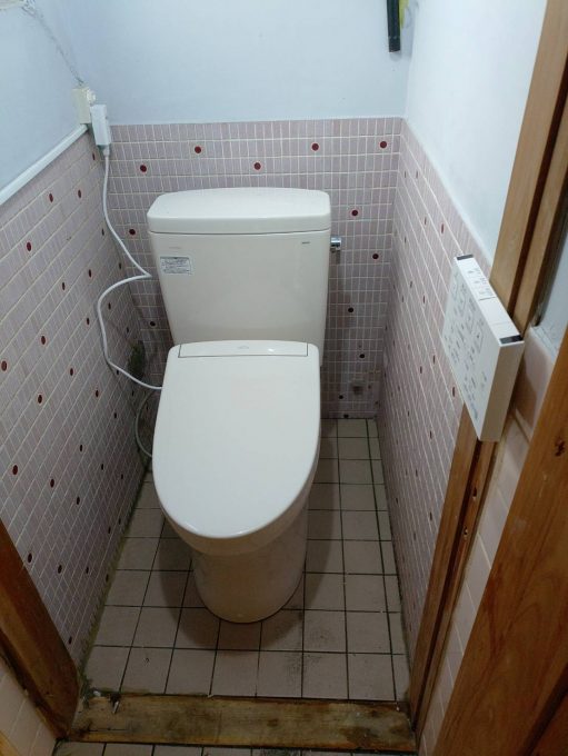 周りを綺麗に掃除した後に、新しいトイレを設置し各設定を確認して、作業完了です。