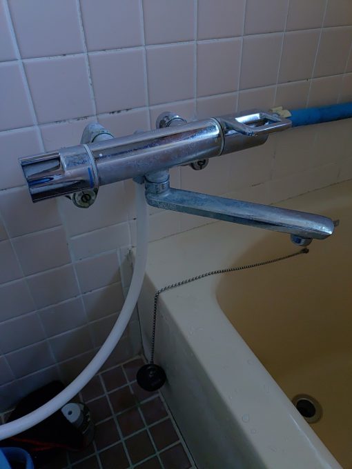 お客様にお話を伺ったところ、温度調整のハンドルを回してもお湯が出なくなったとのことでした。