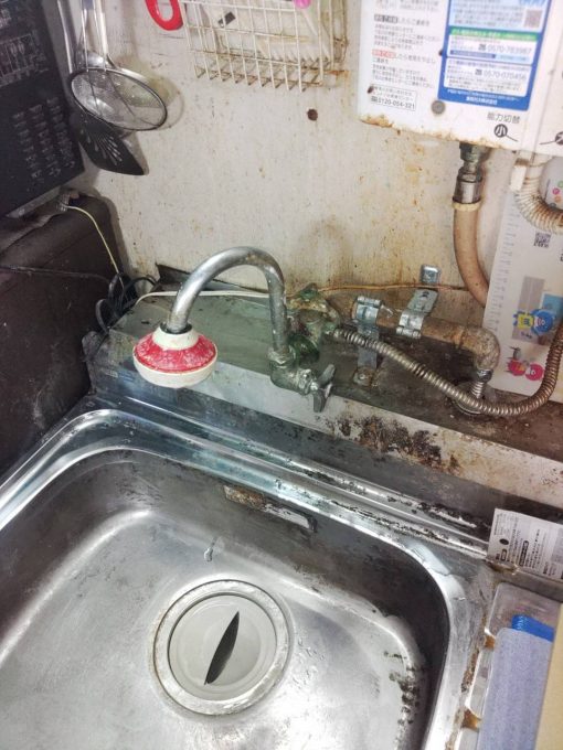 腐食が顕著な蛇口でした。折らないように慎重に作業を進めました。